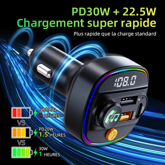 Bluetooth 5.3 transmetteur FM mains libres voiture auxiliaire Radio modulateur lecteur MP3 avec 22.5w et adaptateur de charge rapide pd30w accessoires de voiture